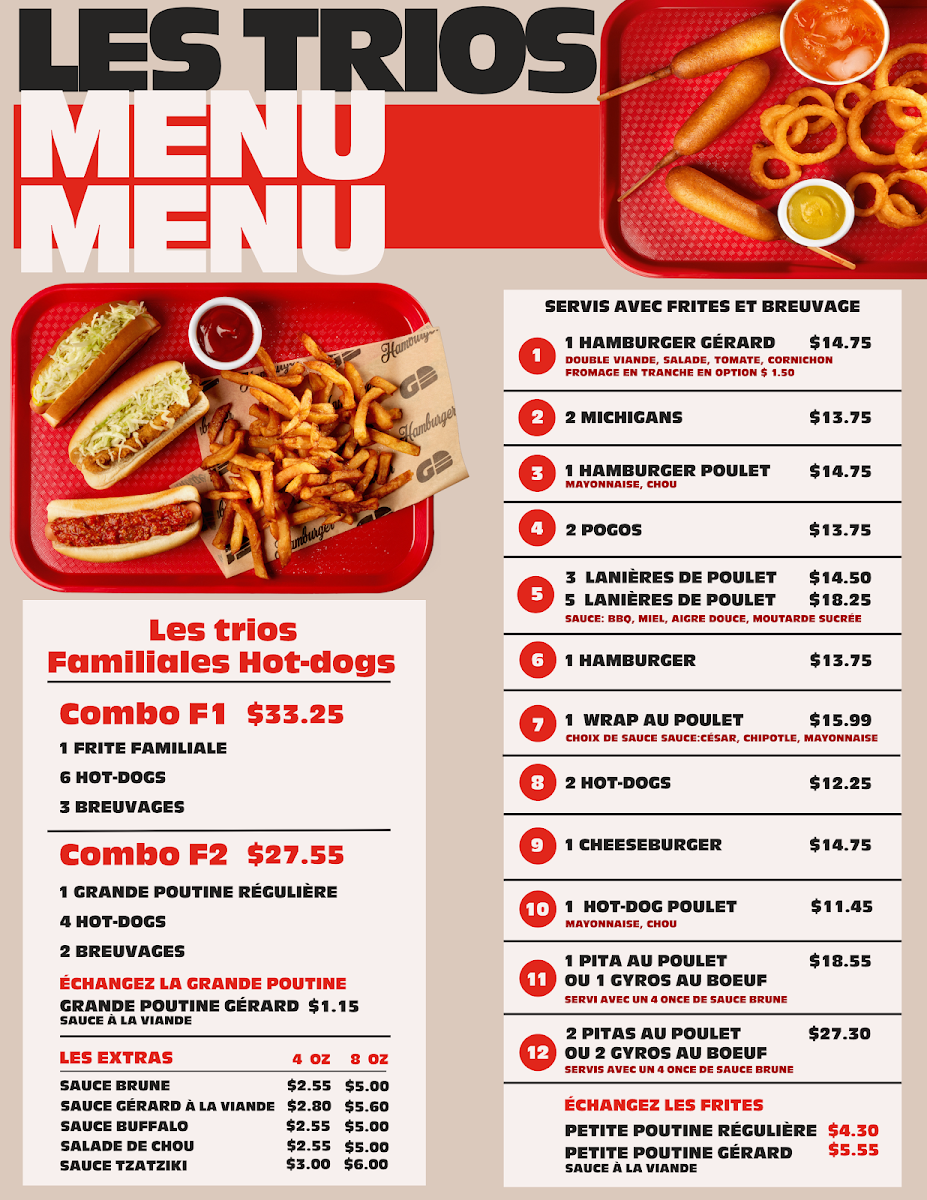 Welcome to Chez Gerard Patates Frites, a delightful gem nestled in Saint-Joseph-du-Lac, Quebec. This charming eatery is renowned for its authentic, mouth-watering offerings that keep customers returning. The menu showcases classic favorites like their famed poutine, served with fresh, squeaky curds and a unique vegetarian gravy that delights the taste buds.